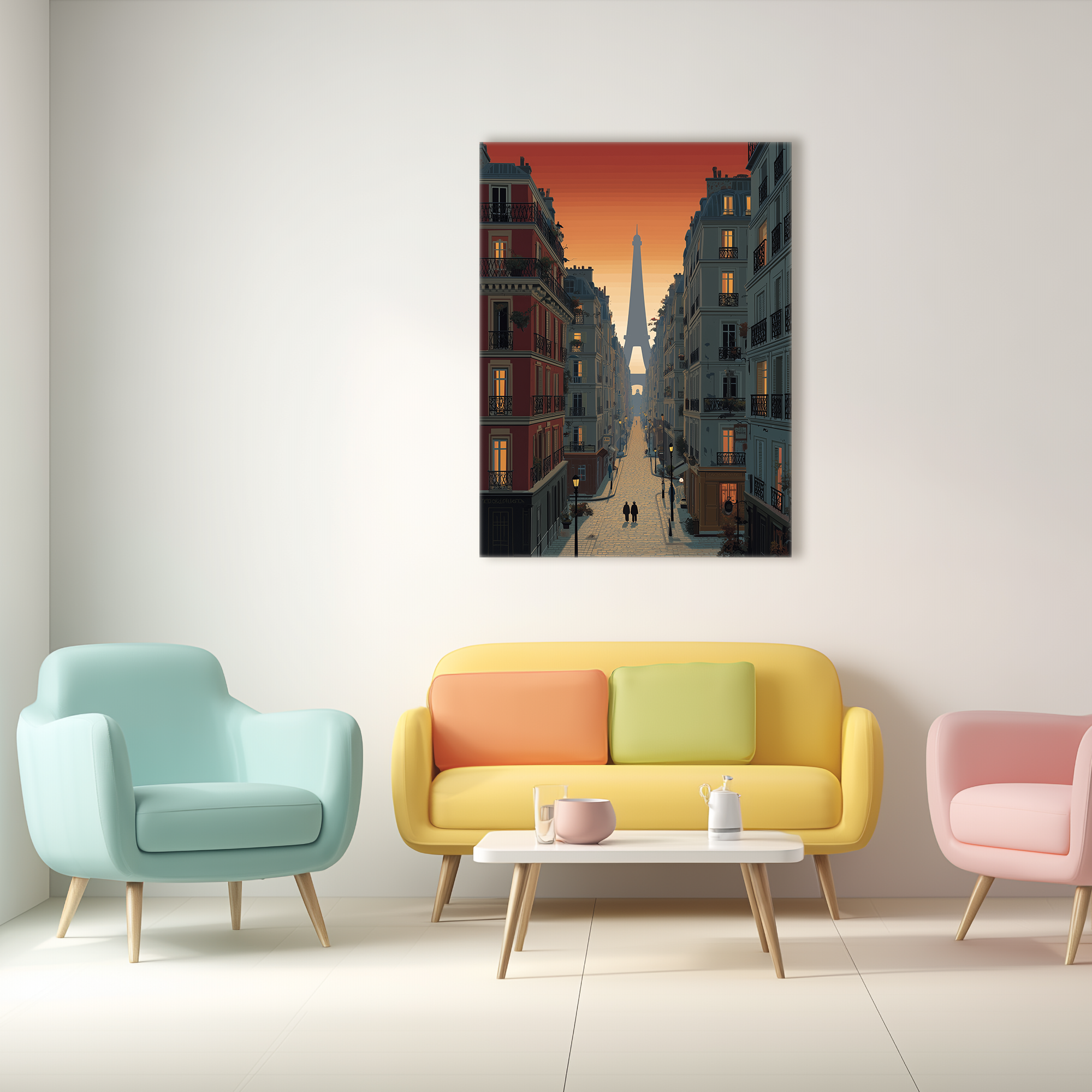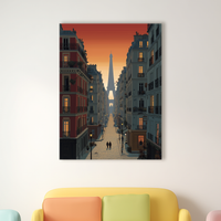 A Parisian street at sunset, framed by symmetric façades with the Eiffel Tower in the distance, becomes a moment frozen in time. The warm light and balanced composition evoke urban nostalgia. This illustrated scene has been curated by BLENZO studio for its ability to capture calm and beauty in everyday life.
