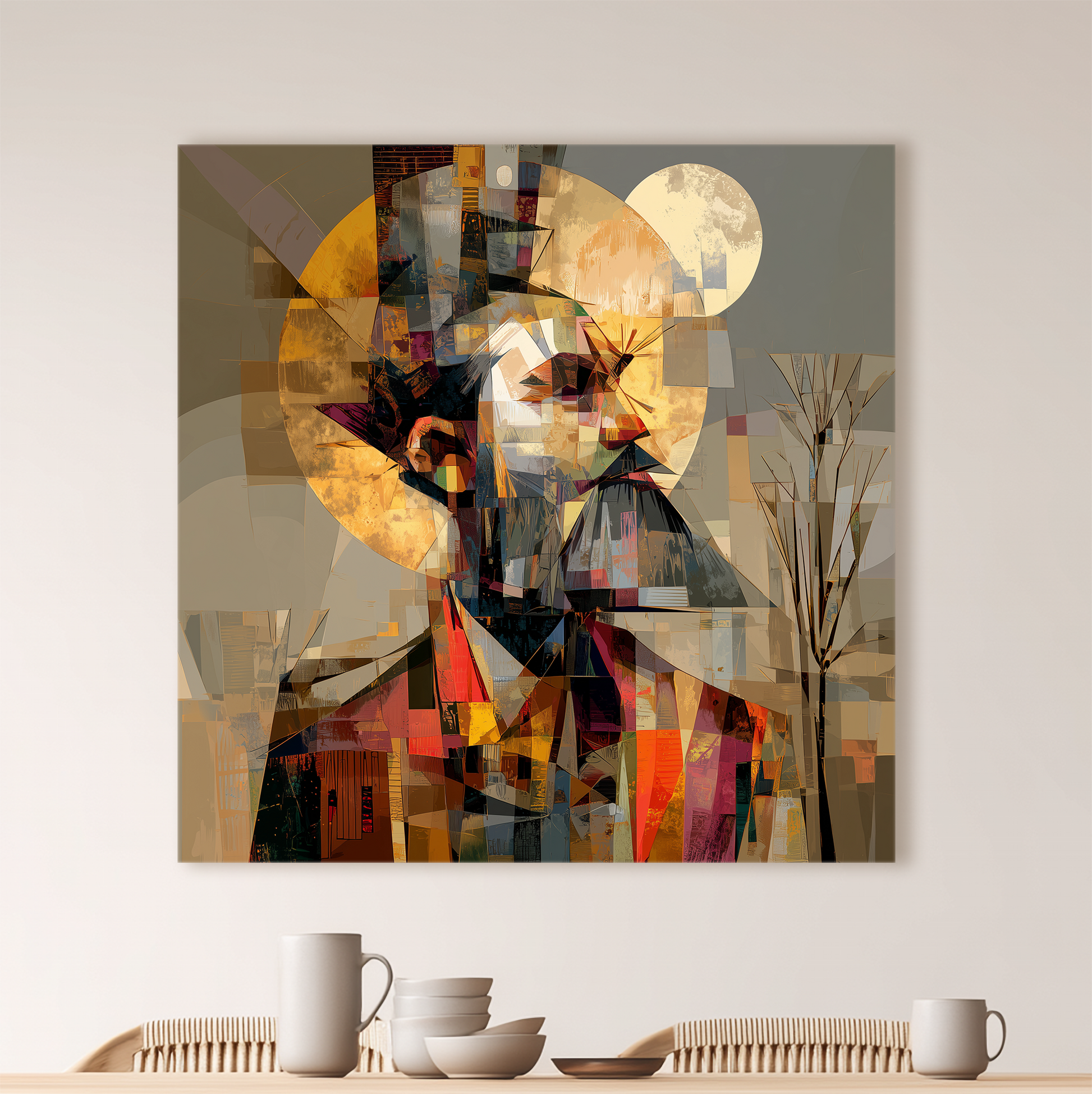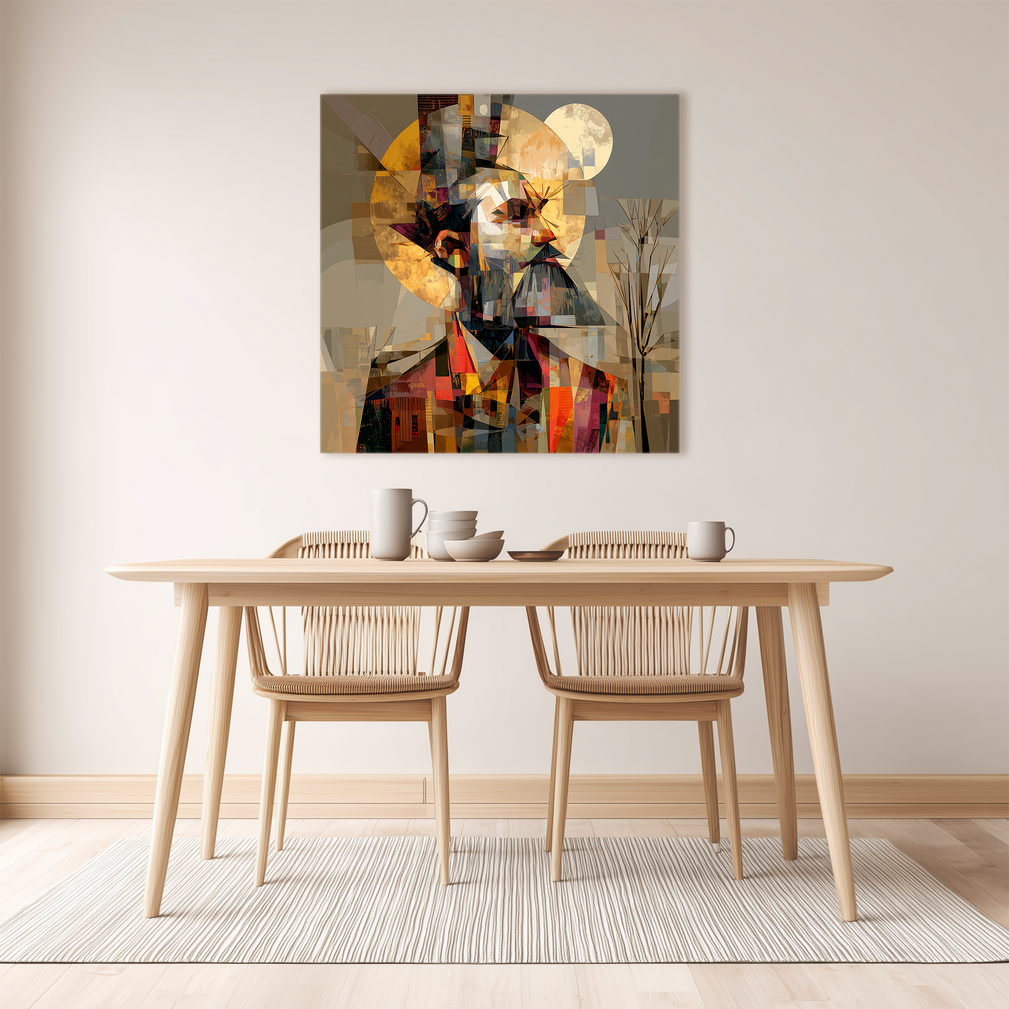Ideal para espacios de lectura, estudios o interiores que buscan una pieza introspectiva con fuerza visual.