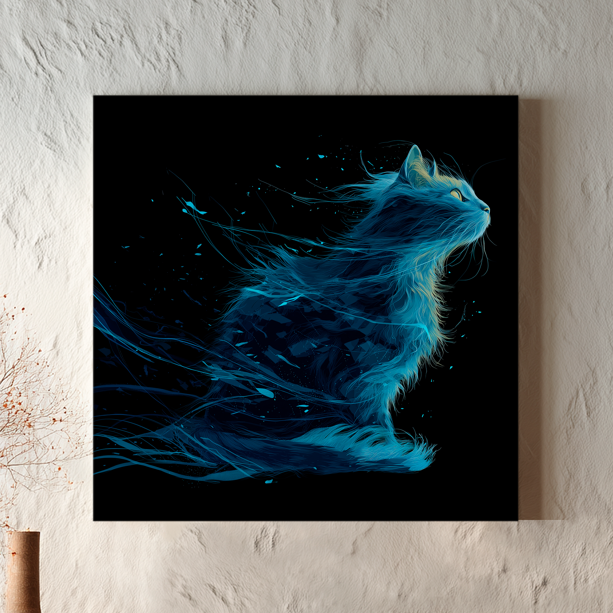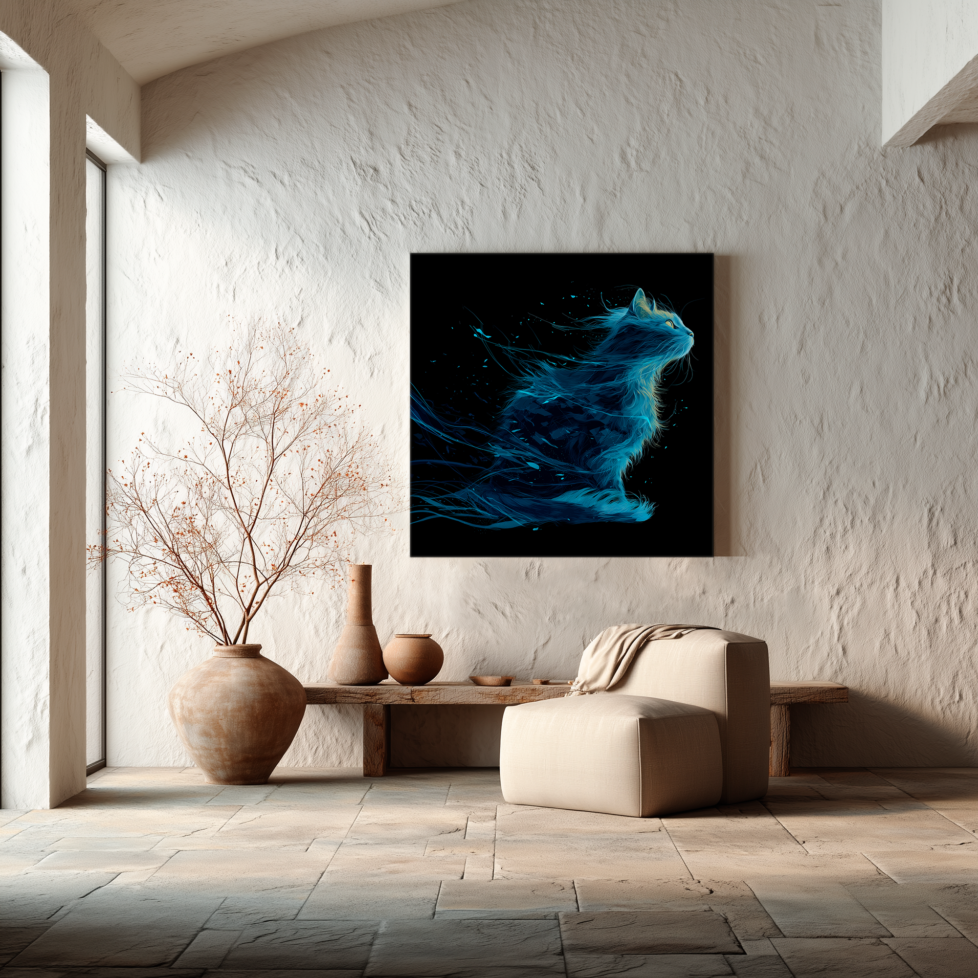 Una figura felina emerge entre ráfagas de líneas azules, como si el viento dibujara al gato en tiempo real. Seleccionada por BLENZO studio, esta imagen combina energía, delicadeza y un poderoso juego de siluetas y transparencias.