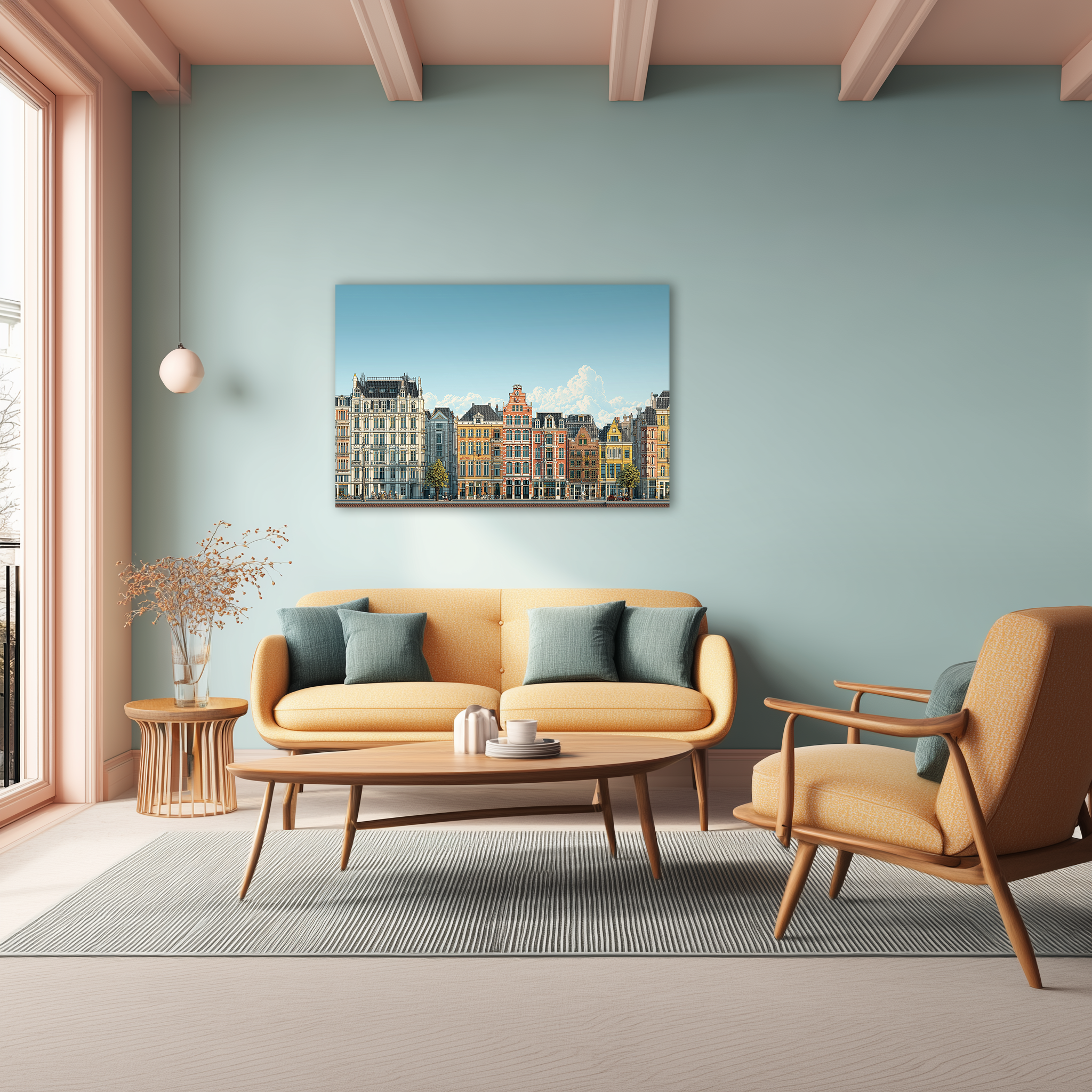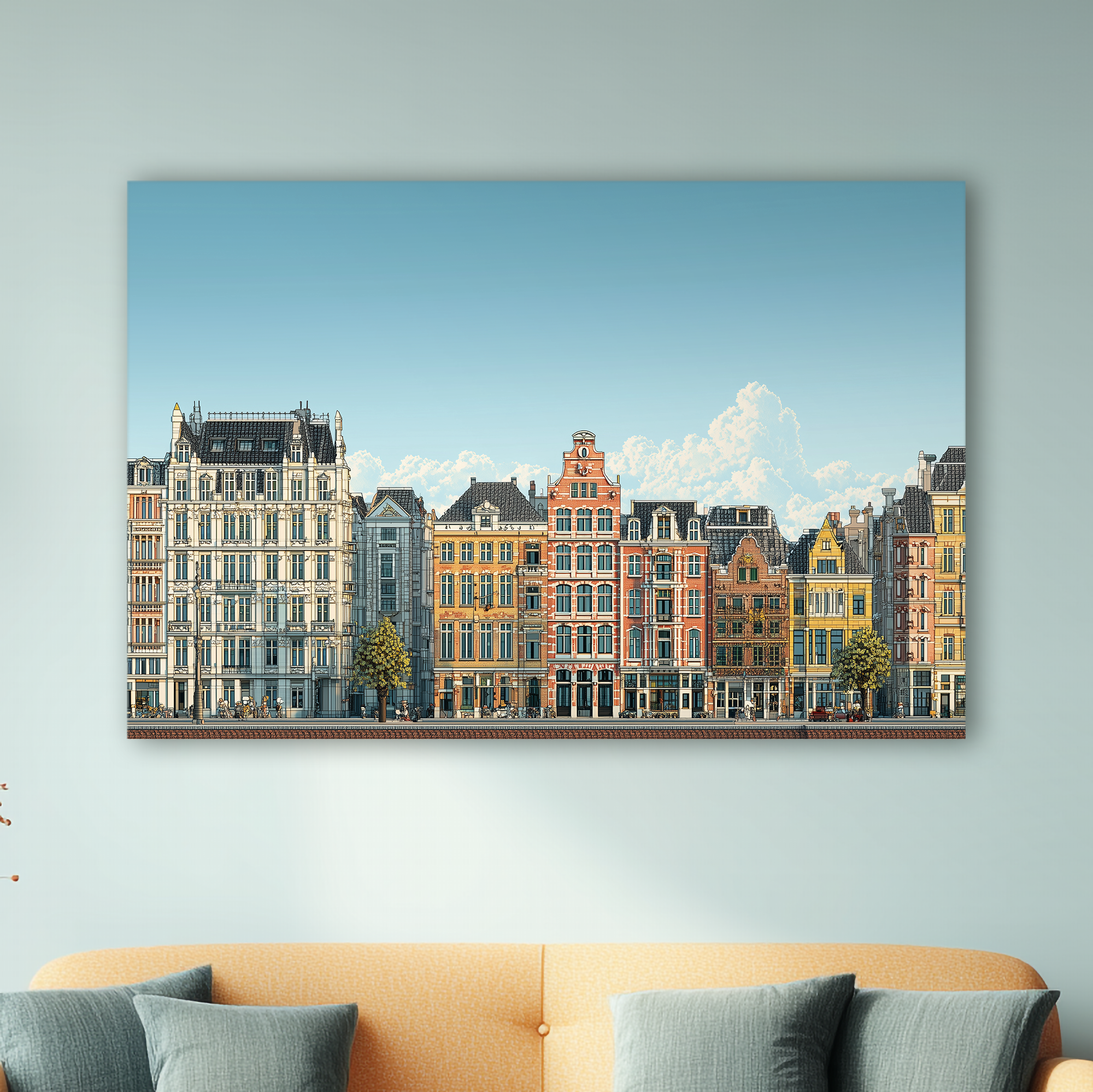 Una detallada ilustración de fachadas urbanas en una ciudad europea, donde cada edificio cuenta una historia visual. Seleccionada por BLENZO studio, esta obra combina encanto arquitectónico, precisión gráfica y una atmósfera luminosa.