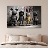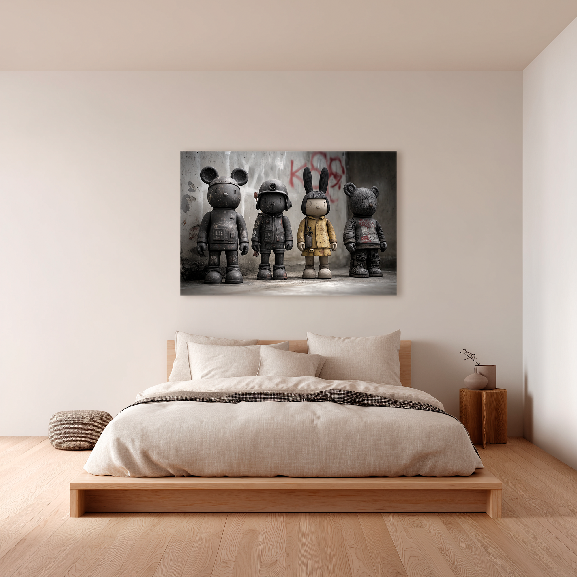 Figuras que combinan lo urbano, lo pop y lo distópico. Una escena casi teatral, donde el arte toma cuerpo. Creación seleccionada por BLENZO studio.