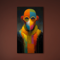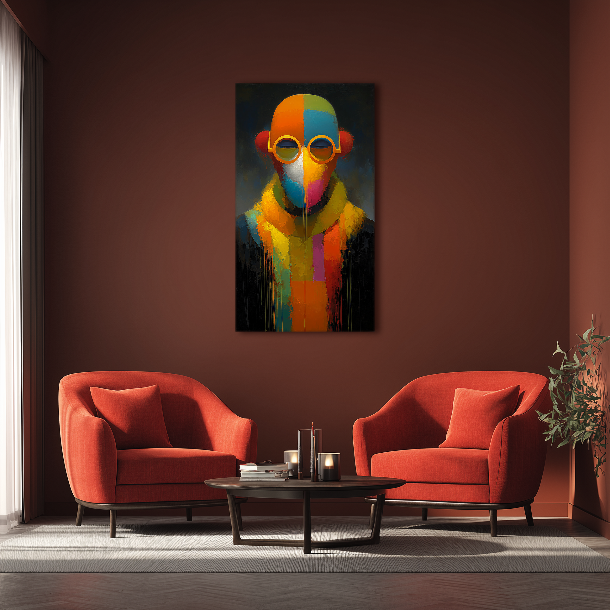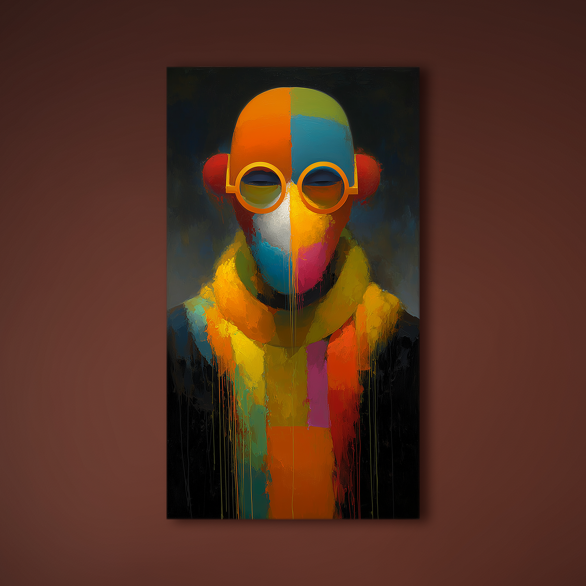 Esta figura sin rostro, envuelta en colores vibrantes y formas geométricas, representa una presencia enigmática y contemporánea. Su estilo pictórico con textura y goteos transmite emoción más allá de lo reconocible. Una propuesta singular seleccionada por BLENZO studio para formar parte de un tríptico.