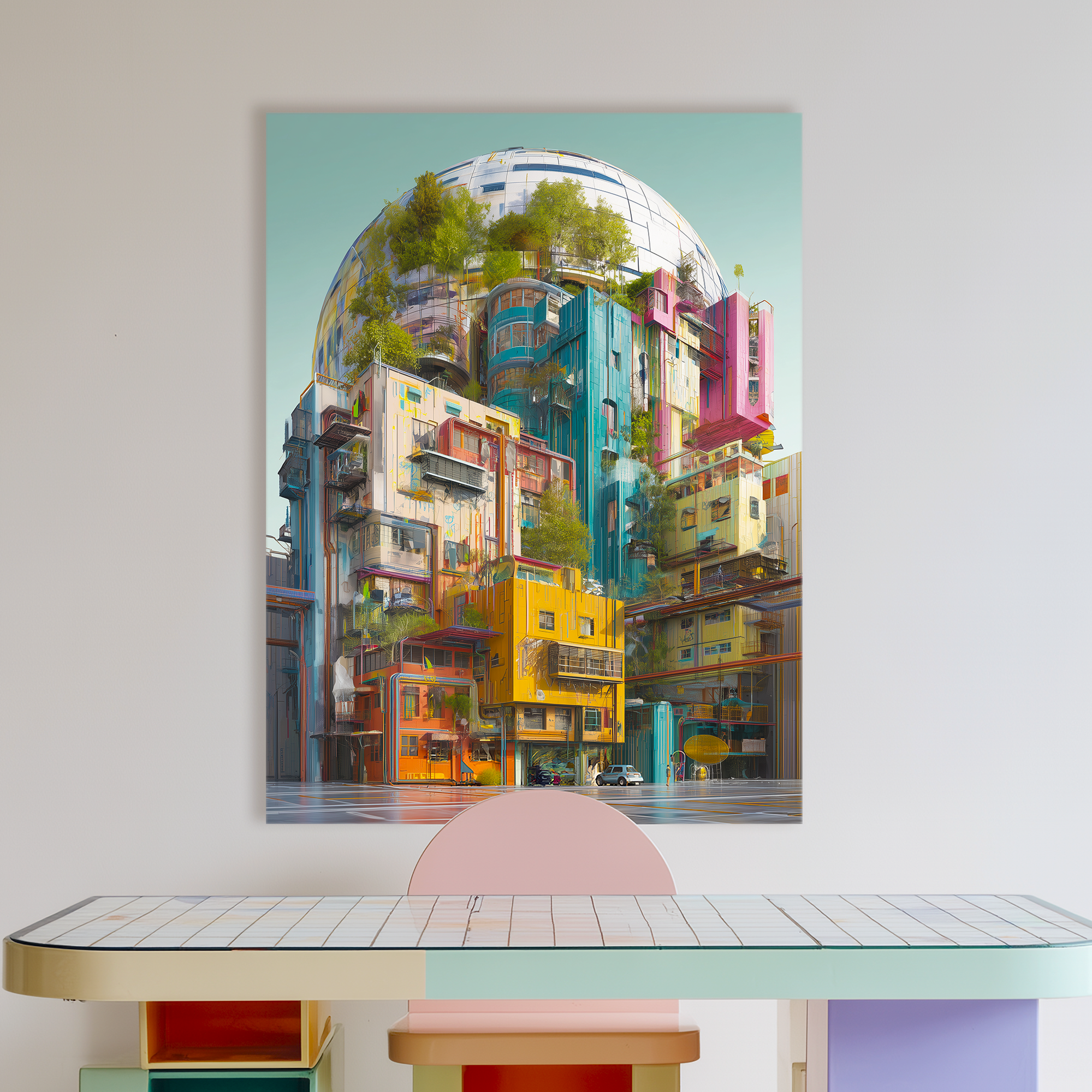 Un planeta hecho arquitectura. Esta construcción imposible, que parece habitar una cúpula futurista, combina vivienda, jardín vertical, urbanismo retro y colorido tropical. BLENZO studio propone aquí una ciudad condensada, viva y utópica que desafía la lógica y multiplica el asombro.