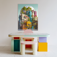 Ideal para interiores que abrazan la fantasía urbana y la arquitectura visionaria.
