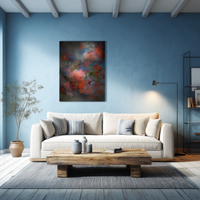 Una composición abstracta floral donde los matices rojos, azules y verdes se funden en transparencias y veladuras, evocando la vitalidad de la naturaleza reinterpretada en clave digital. Curada por BLENZO studio, esta obra conecta lo orgánico con lo contemporáneo, creando una atmósfera envolvente y sofisticada.