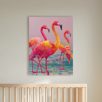 Una composición de estética psicodélica y colorido electrizante, con garzas enmarcadas en una atmósfera fantasiosa. El dinamismo del trazo y la saturación cromática recuerdan al universo visual de Sagmeister y Natalia Rak.