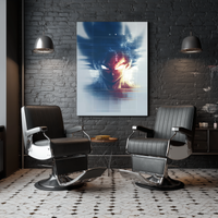 Esta obra plasma con intensidad una figura envuelta en energía, entre luces eléctricas y sombras digitales. Una propuesta potente y emocional seleccionada por BLENZO studio.