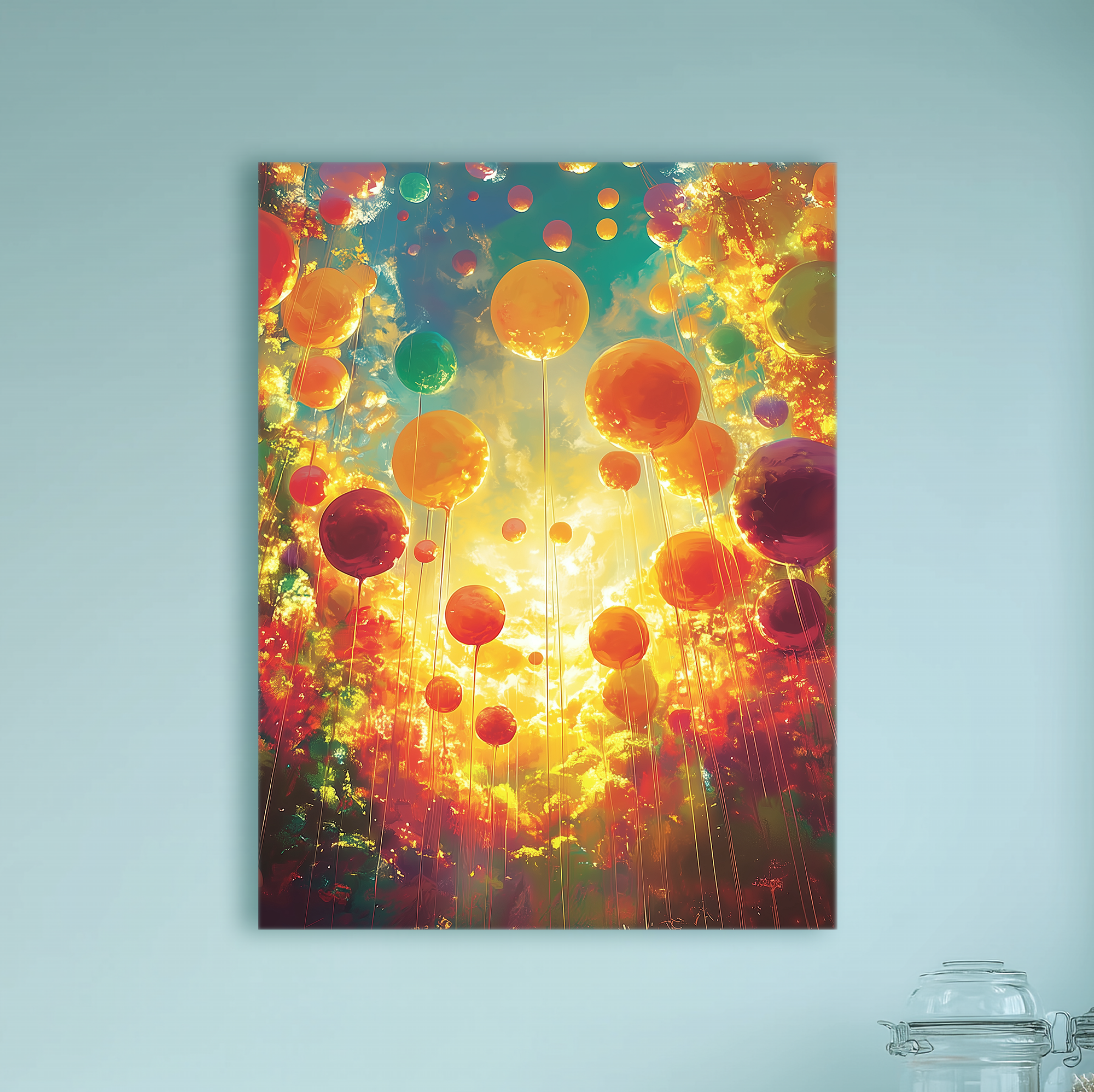 Un cielo dorado repleto de globos suspendidos en el aire compone esta escena de ensueño con tintes neo-psicodélicos. Seleccionada por BLENZO studio, esta obra explora el asombro visual y la sensación de elevación, entre la infancia y la utopía.